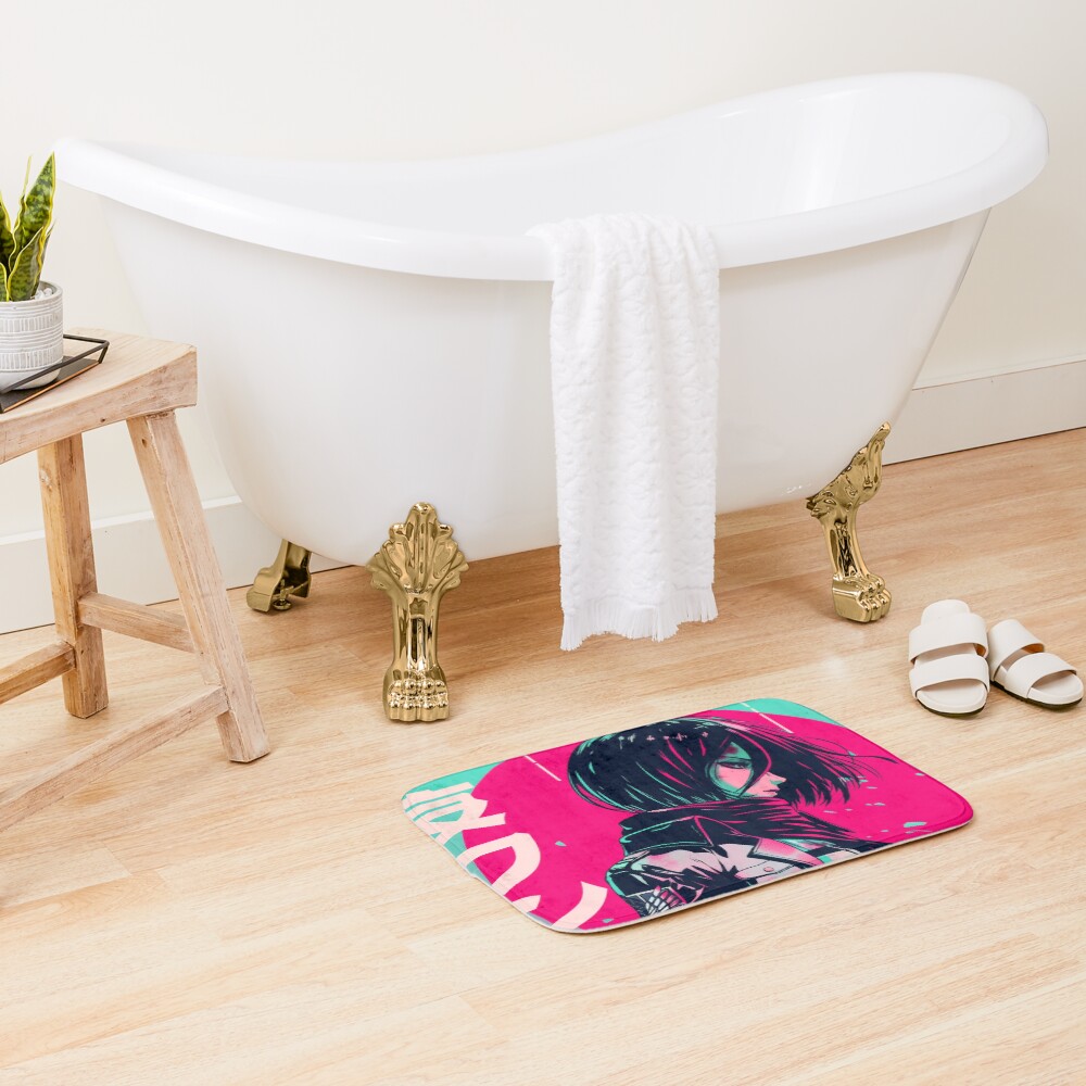 Neon Vaporwave Mikasa Chad Energy Bath Mat